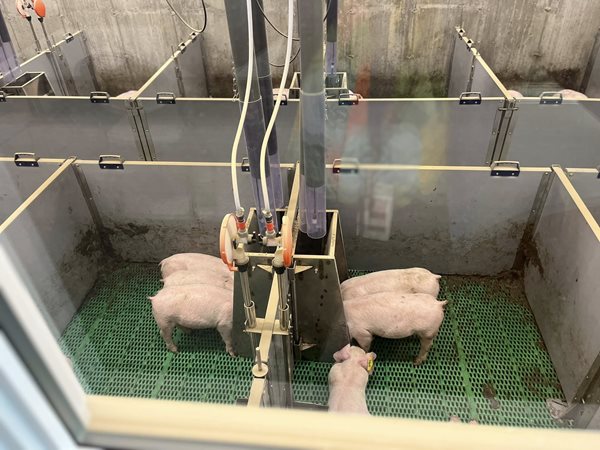 Les premiers porcelets entrés à la station ont pu être observés et photographiés grâce notre vitrine technologique, laquelle permet de voir les animaux dans les chambres de pouponnière et engraissement sans entrer directement dans nos installations, pour des raisons de biosécurité.